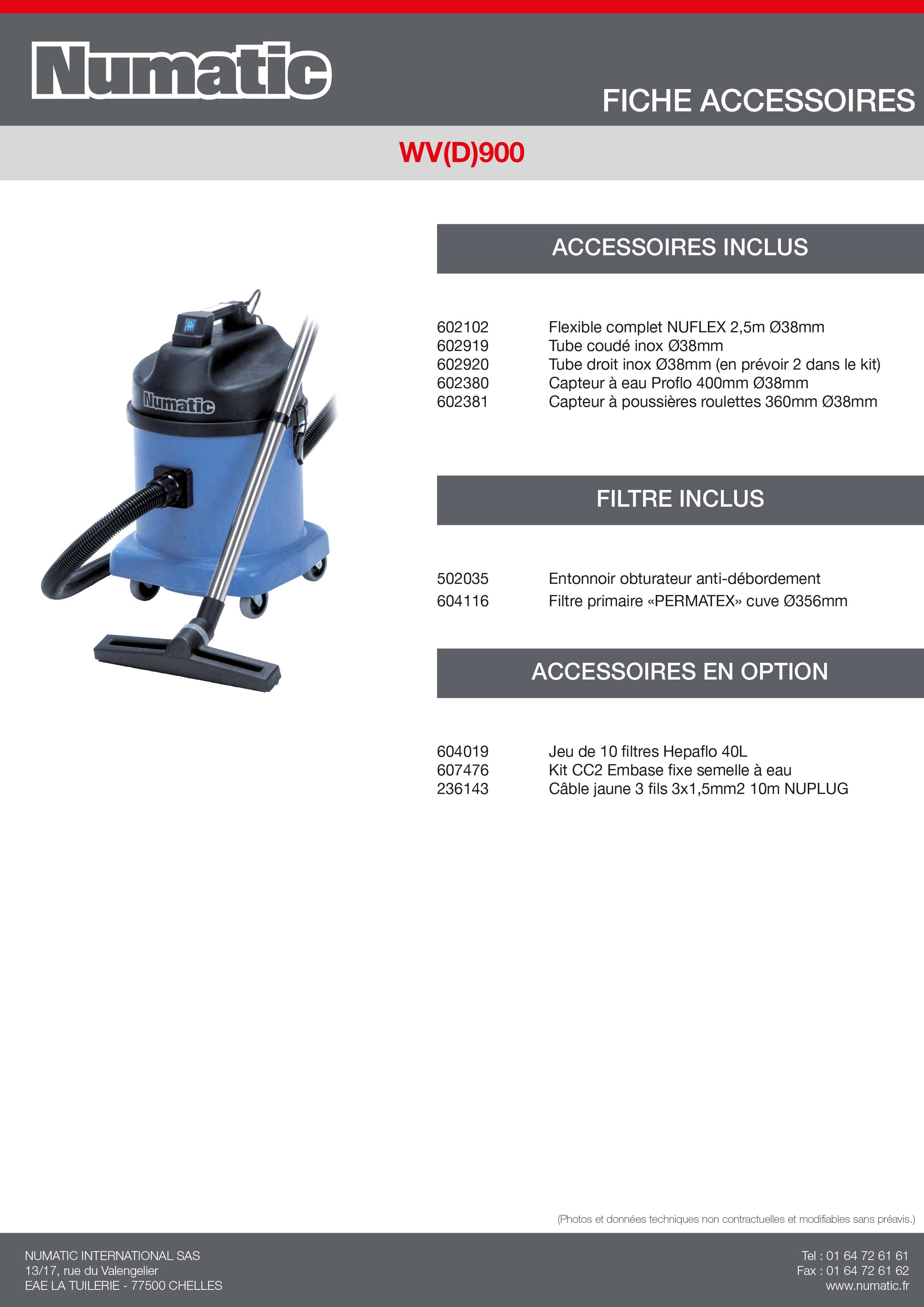 L’aspirateur eau et poussières WVD900 est équipé de deux moteurs puissants «By-pass» (turbine 2 étages) de 1060W. Sa polyvalence le rend aussi efficace pour éliminer les déchets solides que liquides.
