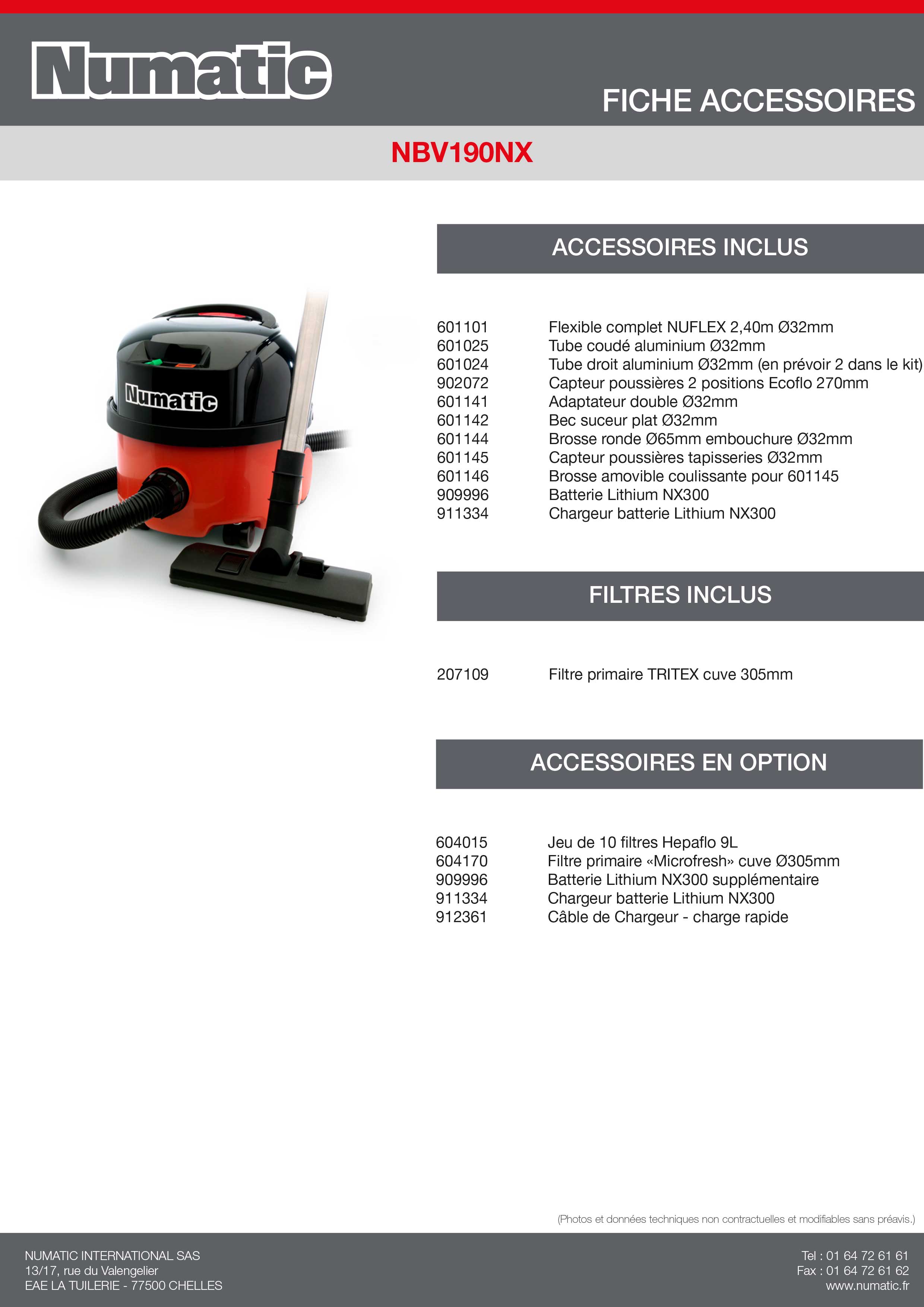 04 98 03 73 45Doté d'un design compact, le NBV190NX est alimenté par notre batterie Lithium dernière génération, la NX300. Cette batterie puissante (36V 1h d'autonomie) et rechargeable rapidement (80% de puissance en 1h) peut être utilisée avec tous les produits de la gamme NX de Numatic.