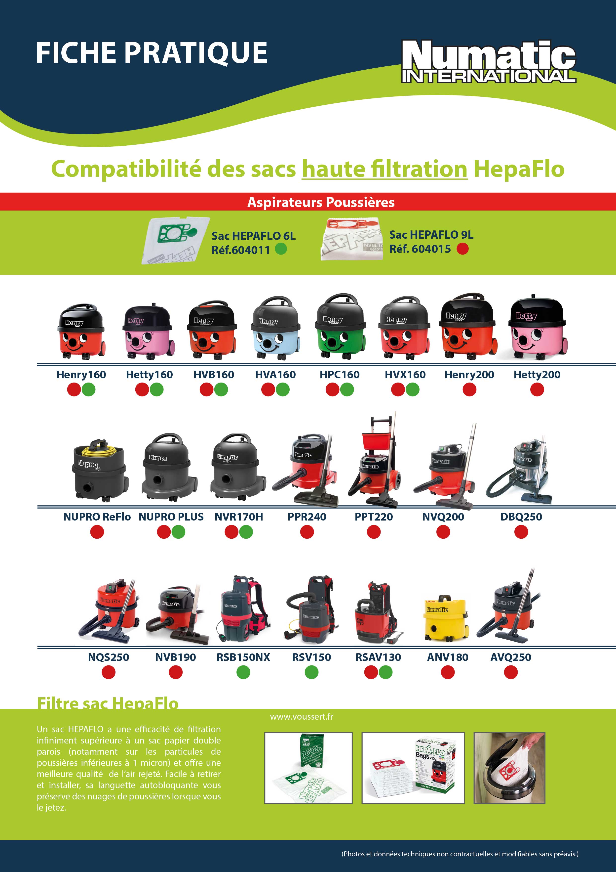 L’aspirateur poussières NVR170 HEPA, grâce à son triple niveau de filtration – cartouche filtrante HEPA H13 (EN1822), filtre TriTex, sac haute filtration HepaFlo – offre une meilleure qualité de l’air rejeté et permet donc de répondre à cette nouvelle réglementation.
